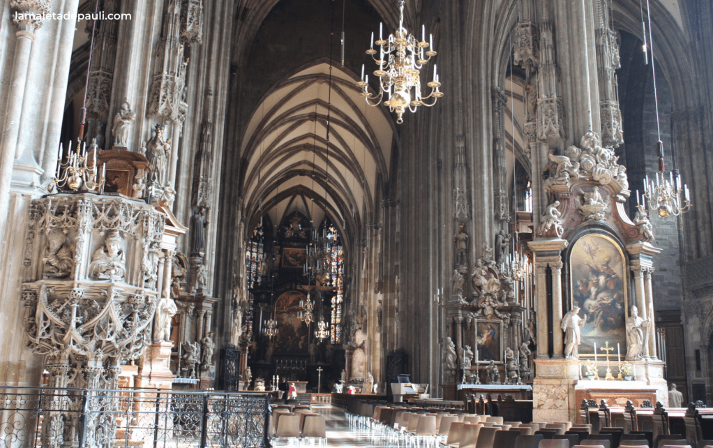 Por dentro también es muy chula, sobre todo por la gran variedad de estilos que la componen. Aunque mis parte favorita son las columnas, tan recargadas que da la sensación de encontrarte en un lugar tremendamente abrumador. En su interior tuvieron lugar la boda y el funeral de Mozart, pero también es el lugar donde se encuentran los restos mortales de la mayor parte de los Habsburgo.
