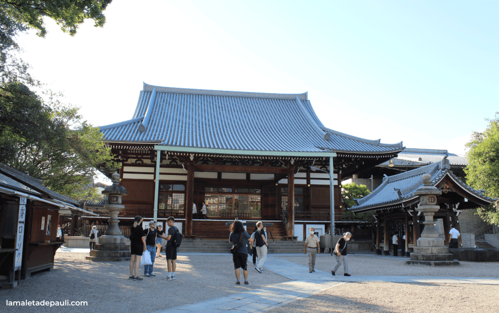 Muy cerca del anterior, se encuentra Shitennoji, el templo budista más antiguo de Japón. Fue fundado en el año 593, en la actualidad todavía conserva su diseño original pese a haber sufrido varias reconstrucciones debido a incendios y guerras. Y es que, como podéis ver, los incendios han sido una constante en la ciudad a lo largo de los siglos.