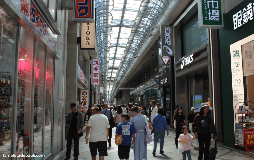 Algo menos rupturista, pero igual de popular es Shinsaibashisuji, una de las calles comerciales más emblemáticas de Osaka. Un largo pasaje cubierto ideal para los amantes de las compras, con boutiques de alta gama y marcas internacionales, pero también con pequeñas tiendas locales con productos únicos.